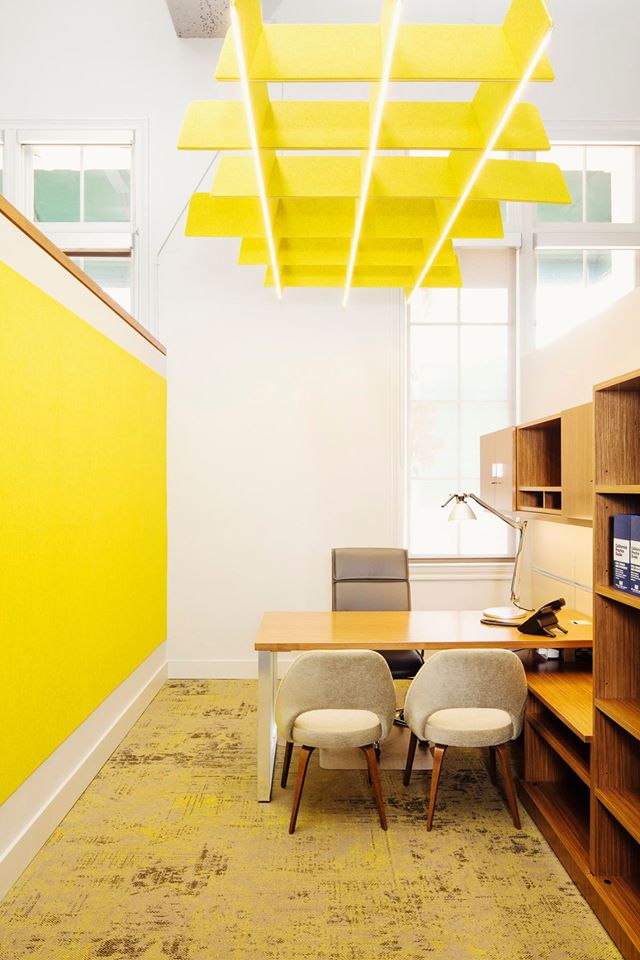 Les faux plafonds sont également pratiques pour cloisonner un espace sans pour autant bloquer la luminosité de la pièce : au dessus d’une table de réunion, ou dans un open space. Buzzispace a ainsi développé pour les espaces publics et aménagements de bureaux le Buzzigrid, en forme de grillage de 3m de long pour plus d’ 1m80 de large.  Le Buzziland est également pratique, de forme ronde ou ovale, et dispose de deux systèmes d’accroche, au plafond ou aux murs.